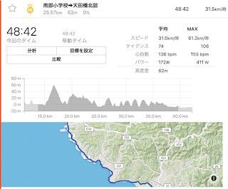 もう日常になりつつあるけど平均172wを48min出して走破してる