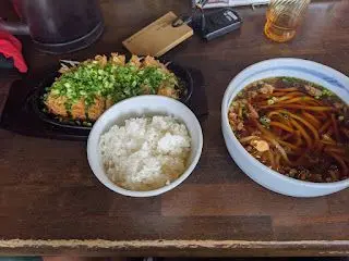 | ご当地桜えびのかき揚げうどんと味噌カツ。 このボリュームで950円! |