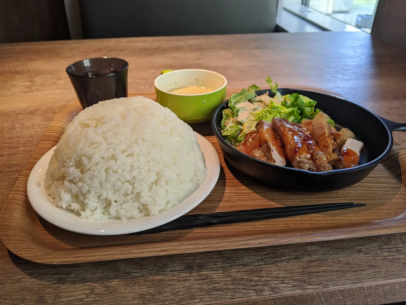 | いつも行くお店で店員さんに事情を話すとご好意で山盛りのライスを用意してもらえた これだけだとお腹が空くのでこの後うどんやカレーを食べる (店員さんの間ではフジヤマ🗻と言われていた) |