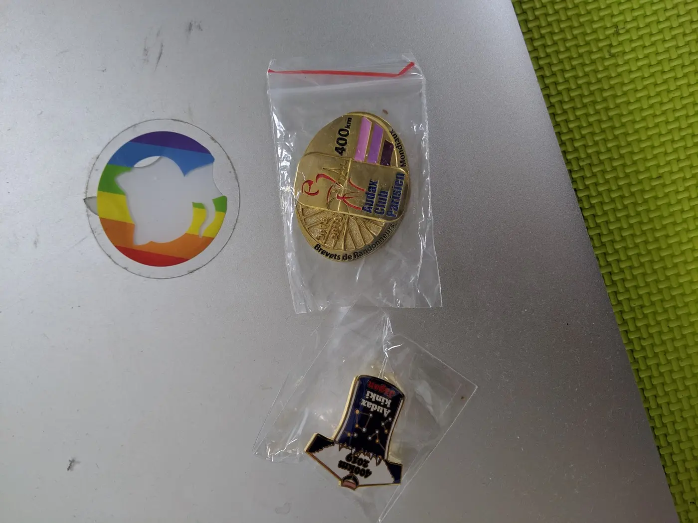 | 完走記念のメダルとピンバッジ ピンバッジのデザインは200/300/400/600の中で一番好き |