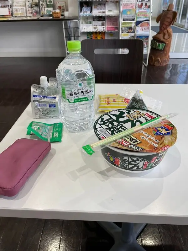 暖かい店内では長めの休憩を取る。かなり気持ち悪かったがドンベェとおにぎりを2個、さらにプロテインとしてファミチキを腹に詰め込む。