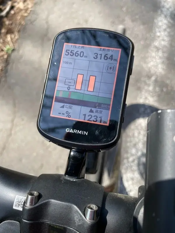 激坂区間ではなぜかサイコンがバグって斜度2%とか表示されているのに勾配が緩むと5%とか表示される。一体どのくらいの坂だったのかデータから判明しないが経験的に12~15%くらいだと思われる。