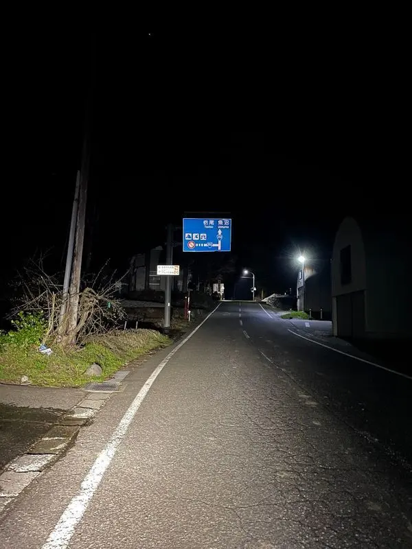 すでに周りは真っ暗である。謎の獣の遠吠えとわずかな街頭の中、山間のアップダウンを4つのライトで切り開きながら進んでいく。